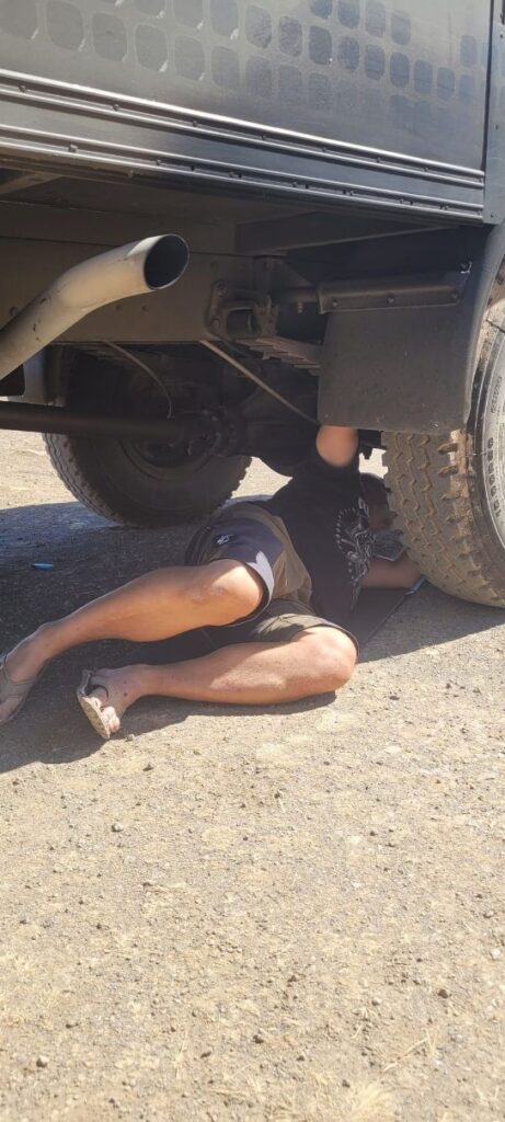 Am nächsten Morgen habe unseren Laster einwenig Liebe geschenkt, Öl aufgefüllt und Räder inspeziert… . Damit er uns auch weiterhin treu bleibt und sicher durch die Welt fährt.