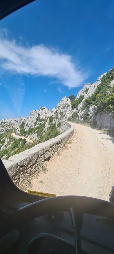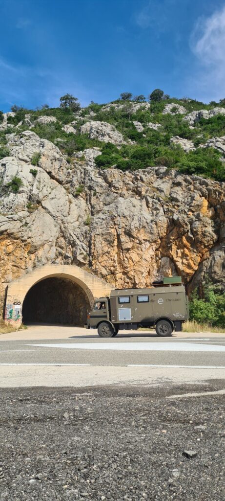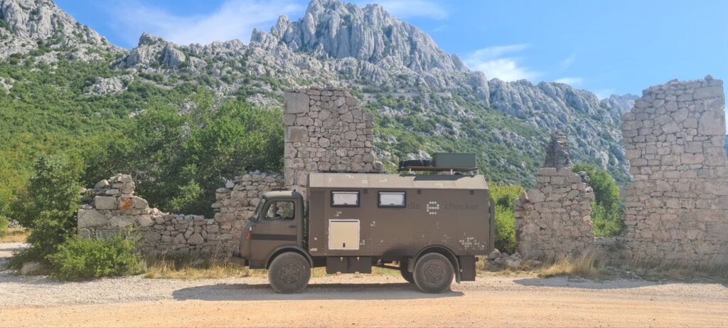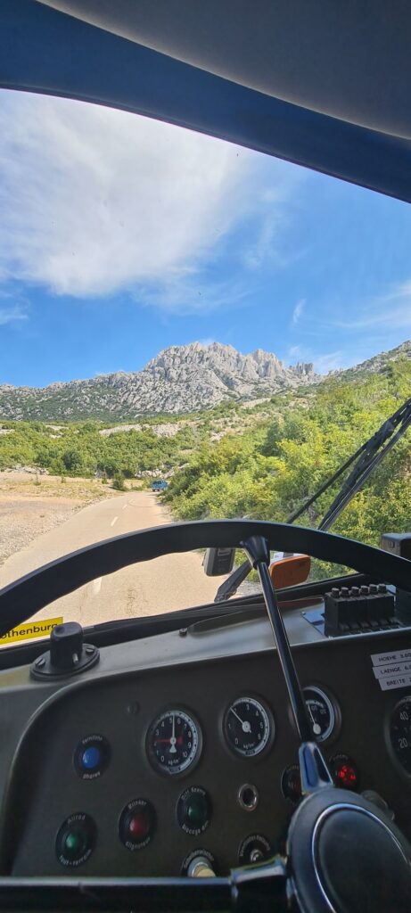 Was wir beim letzten Kroatienbesuch nicht geschafft haben, das haben wir gestern nachgeholt: Wandeln auf Karl Mays Spuren, d.h. weitere Drehorte der Lieblingsserie aus meiner Kindheit besuchen. Also ab in das Velebit Gebirge und mit dem Steyr auf über 1000m, immer den Serpentinen entlangzuckeln… 😉. Die Aufgabe hat unser Dusty mit Bravour gelöst, denn er befand sich ja quasi in seiner natürlichen Umgebung 😉😅. Und das alles ohne 4×4, Untersetzung oder Sperre. Im kleinen Gang zieht er sich fast überall hoch mit seinen 7,5 Tonnen.