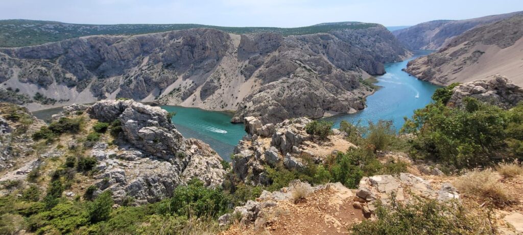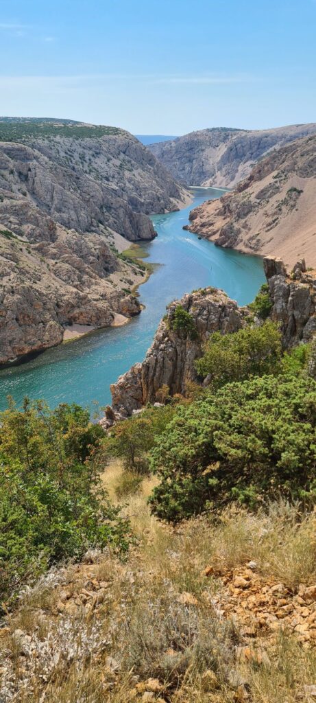 Der Vorteil war, dass wir an einen weiteren, spektakulären Drehort vorbei kamen, dem Zrmanja Canyon. Was hier die Natur geschaffen hat, muss man erlebt und gesehen haben. Beschreibumgen und Fotos spiegeln nur einen Bruchteil wieder. Also ein absoluter Tipp für alle Kroatienurlauber. Ab in das Velebit Gebirge und an den Rand des Canyons.