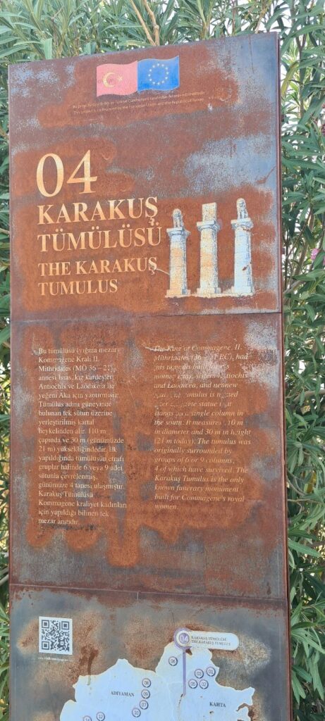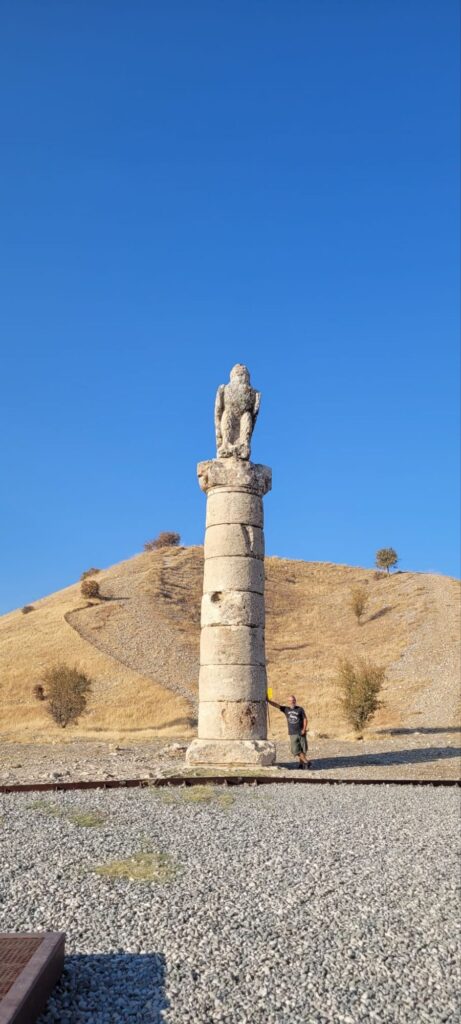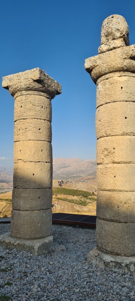 Unser letzter Antiochos Stopp war Karakus Tumulus. Ein Monument vom Sohn des Antiochos, Mithridates. Das Monument sollte als Grabmal für die königlichen Damen (Mutter und Schwestern) dienen. Das Monument ist direkt in Sichtweite des Nemrut Dagi und Arsameia errichtet worden. Womit sich der Kreis von Antiochos schließt. Seine Idee einer eigenen Religion, endet hier.