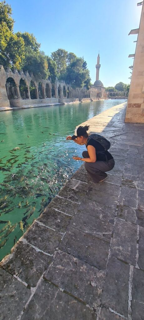 Angefangen mit dem alten Testament, einem Karpfenteich und einer Höhle hinter Glas (Frauen und Männer getrennt… Frauen hatten hier die bessere Aussicht 😅😉) Es handelt sich um den Teich von Abraham… bzw. :