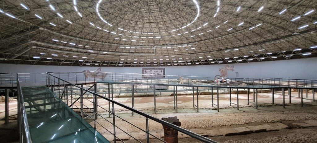 Zwischendurch suchten wir noch Abkühlung im Mosaikmuseum, natürlich war es anders als man sich es vorgestellt. Man läuft über eine Brücke über die riesigen Mosaike aus der Zeit der alten Grieche, beeindruckt.