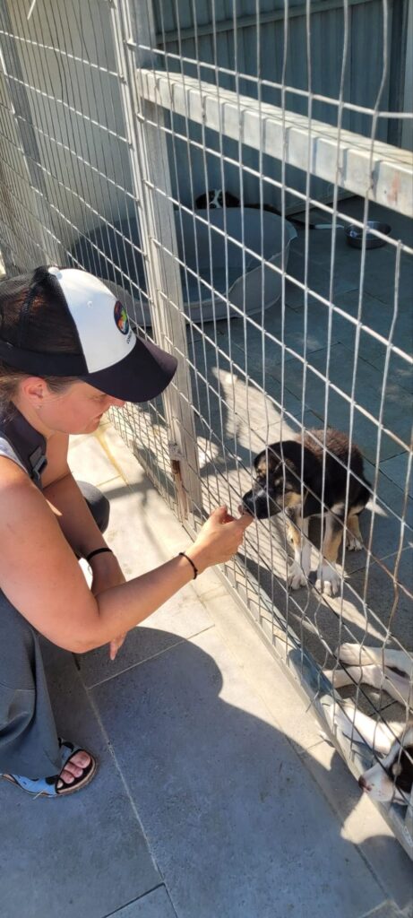 Das Areal ist ausgestattet mit mehreren Häusern (Büro, Unterkunft für Helfer, Krankenstation, OP…) Hundehütten, einzelnen Zwingern, mehreren Freilaufgeländen – wo sich alle Hunde ein paar Stunden austoben können. Es funktioniert im Rotationsprinzip, damit nicht Hunde aufeinandertreffen, die sich nicht vertragen. Also ein gut durchdachtes Areal, wo schon viel für die Tiere getan wird, leider mangelt es an Helfern. Die paar Festangestellten leisten hier schon unglaublich viel. Wären nicht die freiwilligen Helfer, wäre das alles nicht zu stemmen.