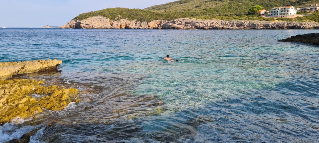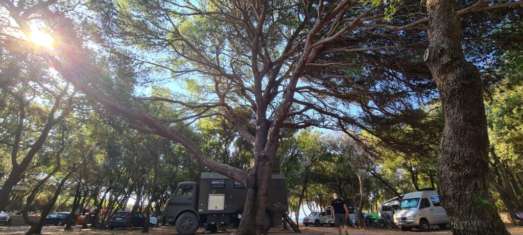 Eigentlich war unser Ziel danach ein weiterer Nationalpark an einer Seenlandschaft. Leider war für uns keine Möglichkeit, den Stellplatz zu erreichen. Ein Nachteil unseres kleinen Campers… . Dann eben doch zur Küste, schwierig einen Stellplatz zu finden ohne Internet. Ja, früher war alles besser mit Karten… 😅. Egal, gefunden hatten wir einen auf unserem Navi. Also ab auf die Halbinsel… naja, durch etwas Stau, etwas Hitze… durch Budva… Schon mehr als nervig. Noch in den engen Straßen der Insel den rechten Außenspiegel eingebüßt… da an den nervösen Golffahrer, Vorfahrt ist kein Hexenwerk… 🙄.