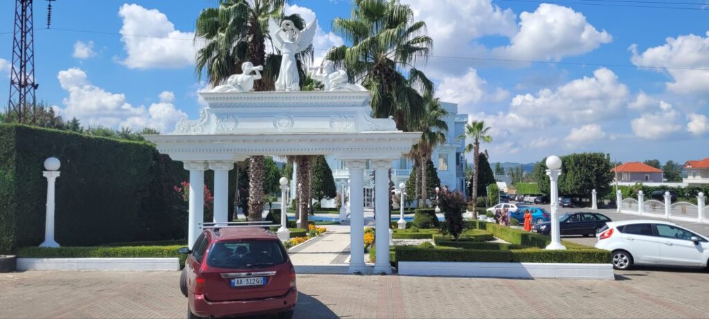 Kaum ein paar Kilometer ins Land gefahren, Paläste am Straßenrand. Am Eingang der Sektempfang, auf dem Parkplatz Nobelkarossen. Alle geschmückt für Hochzeiten, das scheint hier ein großes Geschäft zu sein. Zwischen den Palästen auch alte, verlassene Hochzeitsorte, etliche KFZ/LKW Werkstätten und Möbelhäuser… also ein recht schräges Bild. Kommt man in die größeren Städte, ein Verkehrschaos, das hier in Europa seines Gleichen sucht… nach dem Motto „der Stärkere gewinnt“. Zum Glück wollte sich keiner mit uns messen. 😅. Aber hier verdeutlicht sich das Bild eines ärmeren Landes in Europa.