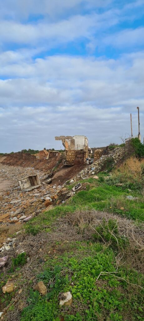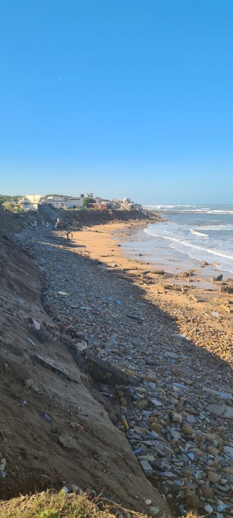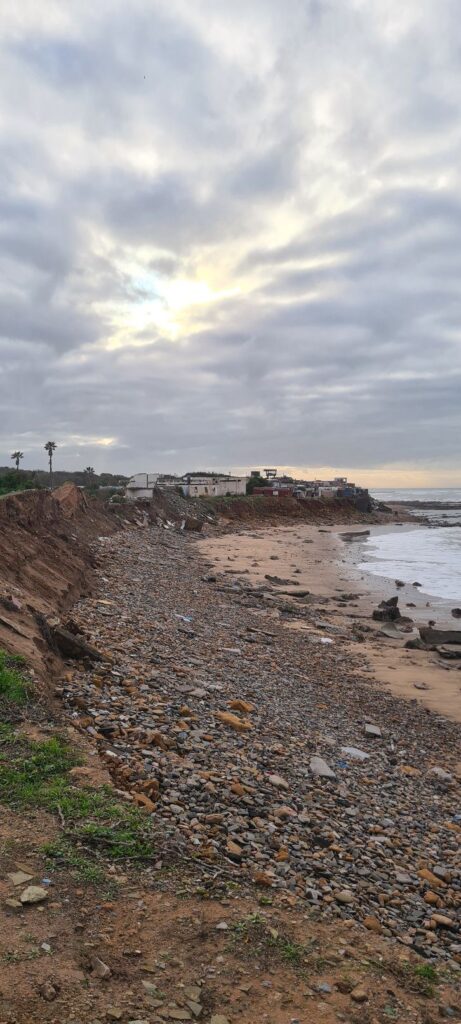 Weiter in Richtung Süden. Das Ziel ein verlassener Campingplatz (Lost Place) südlich von Tamaris. Dort wird man von Einheimischen auf das Areal gelassen (kostenlos oder gegen ein Trinkgeld). Nicht nur der Campingplatz ist ein Lost Place, auch große Teile des angrenzenden Dorfes stehen leer bzw. zerfallen durch den Einfluss (Wellen und Springfluten) des Meeres. Der hat schon einen beachtlichen Teil die Steilküste heruntergespült. Eine verlassene Villa steht wie ein Mahnmal an der Steilküste, die Zufahrt ist schon weggespült, aber am Tor steht noch die Abfalltonne.