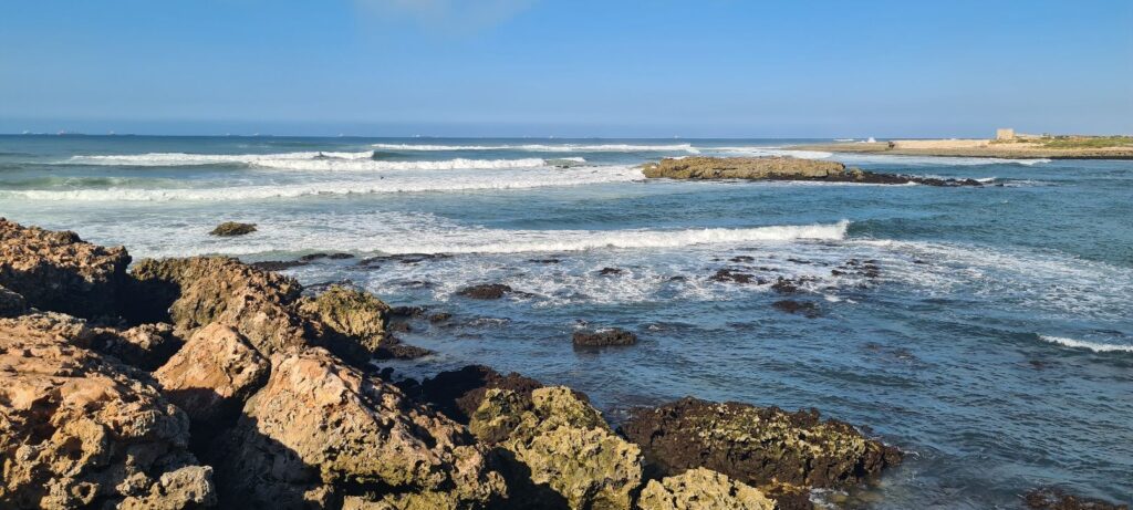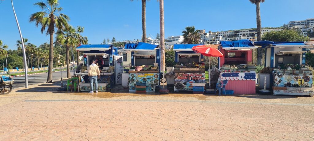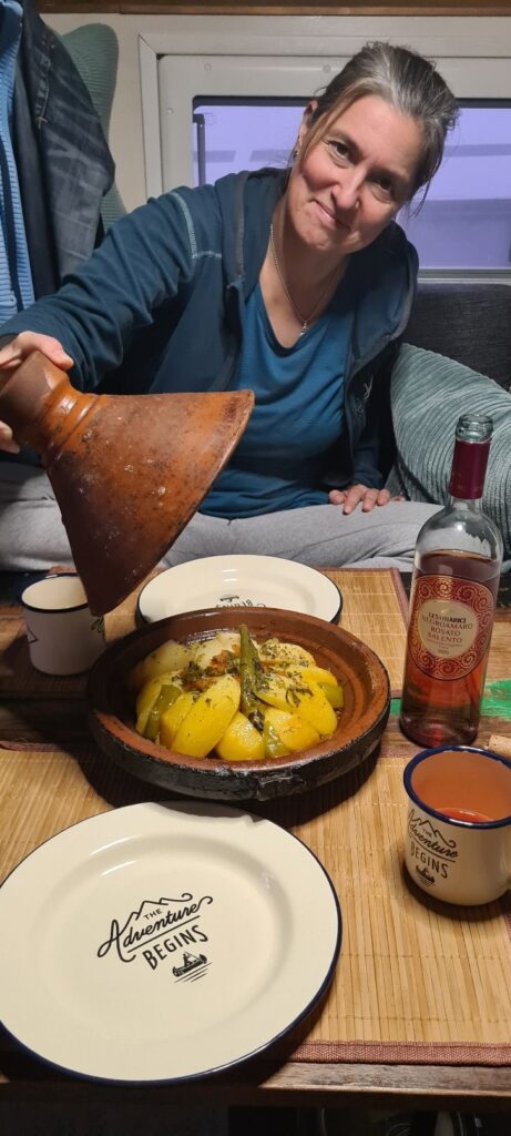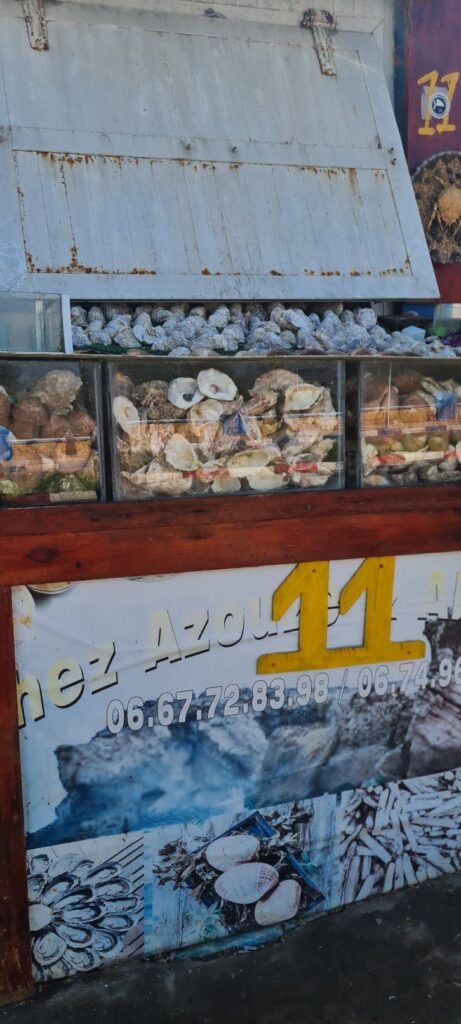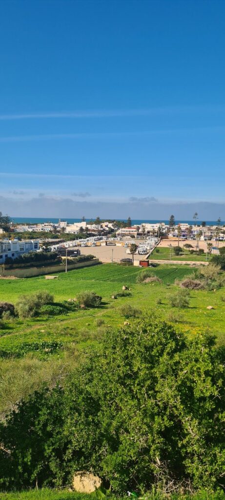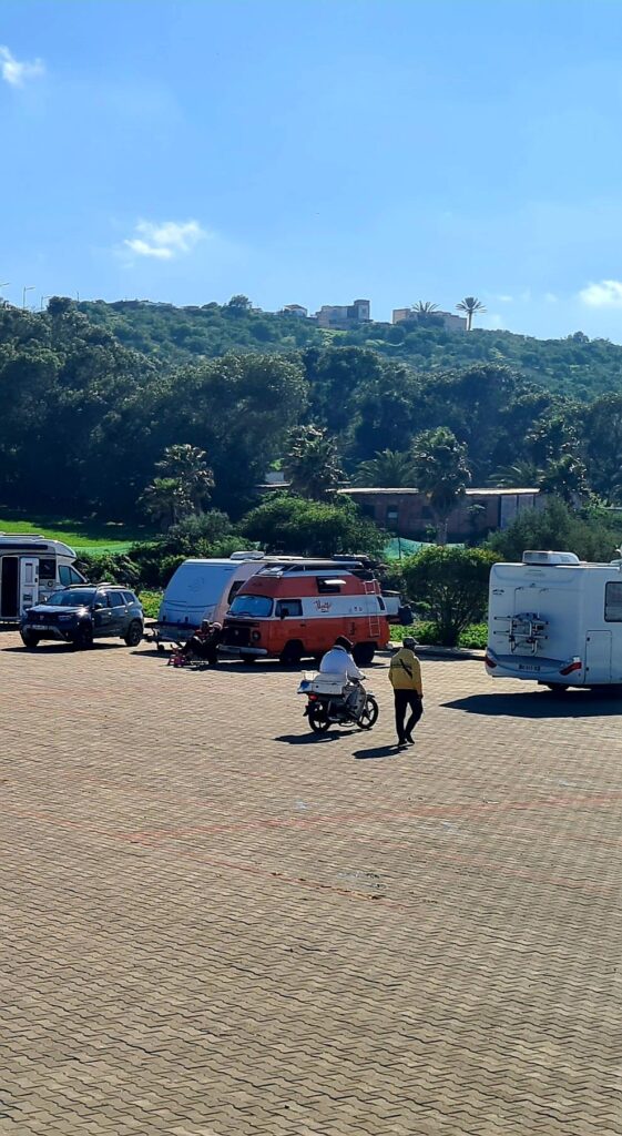 Nächster Halt, Oualidia, bekannt für seine große Lagune. Es gibt zwei Stellplätze im Ort. Einen unterhalb in Strandnähe, erinnert mehr an einen großen Parkplatz, der andere oberhalb, südlich der Stadt. Wir entschieden uns für den letzteren wegen der Duschmöglichkeit 😉😅.