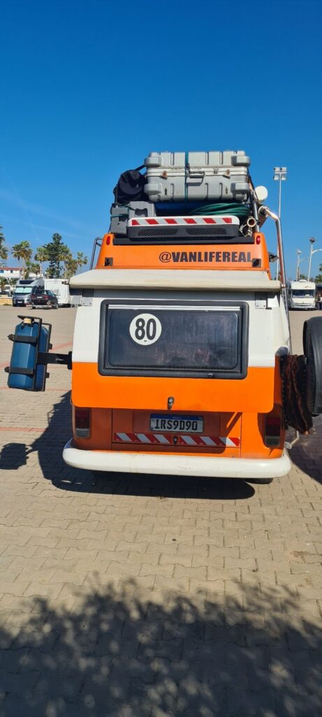 Wir bleiben zwei Nächte, Lagune und Küste laden dazu ein. Auf unserer Erkundungstour entdecken wir einen Camper T3 mit ungewöhnlichem Umbau, dazu noch einen Heckauszug. Ein Blick auf das Nummernschild, der VW Bulli kommt aus Brasilien. Die Neugierde ist geweckt, ich quatsche die beiden jüngeren Vanlifer an. Die beiden Brasilianer sind seit 9 Jahren unterwegs und leben von ihren social media Kanälen, insta: @vanlifereal