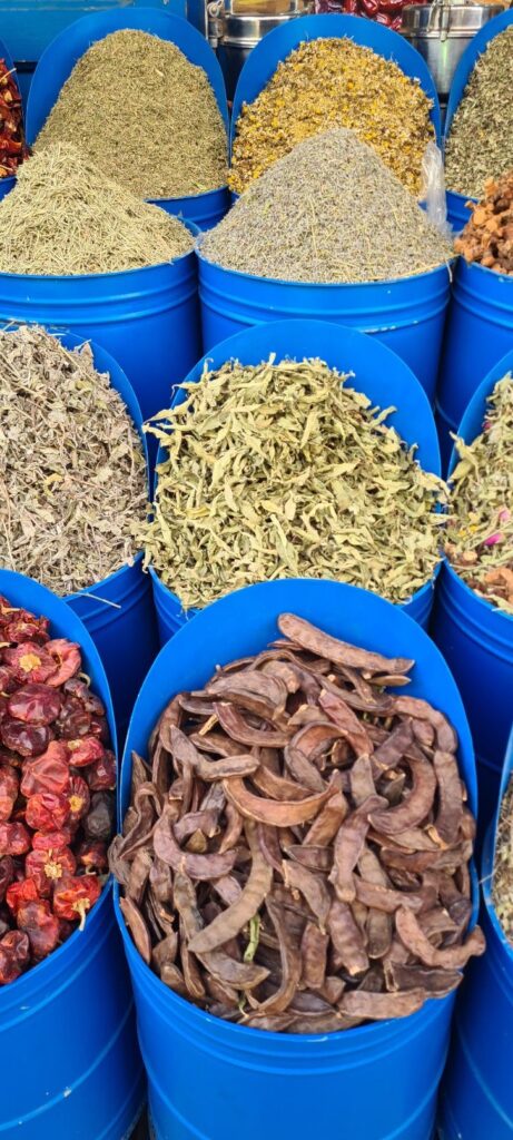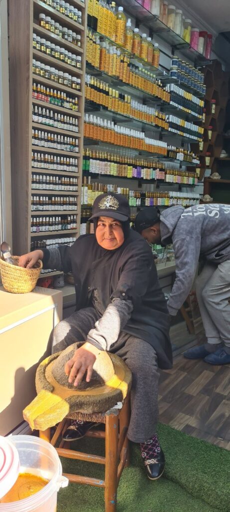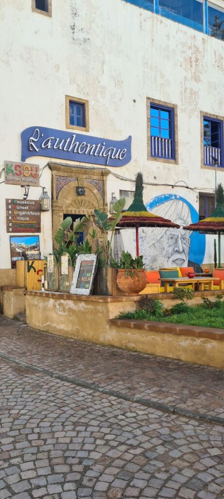 In Essaouira ging es dann durch den alten Hafen und die Medina (Altstadt). Die Medina von Essaouira ist von Befestigungsmauern aus dem 18. Jahrhundert umgeben. In einem Hof lag am Ende ganz unscheinbar ein kleines modernes Café Restaurant, das uns angesprochen hat. Hier ‚versteckte‘ sich im Innenhof ein über 250 Jahre alter Ombu Baum, auch Elefantenbaum genannt, der der älteste Marokkos sein soll. Eine tolle Atmosphäre mit einem außergewöhnlich leckerem Mittagsmenü.