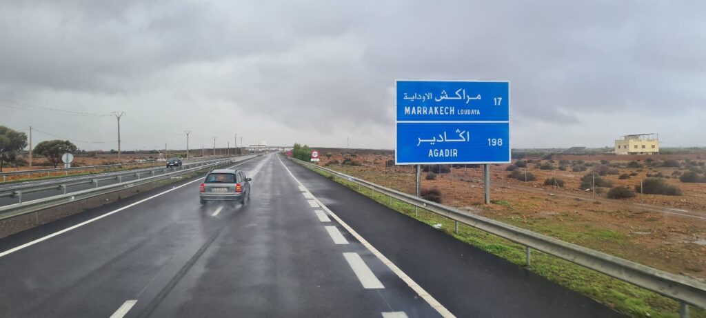 Aber wir hatten die Rechnung ohne Mutter Natur gemacht. Aufgrund der Hiobsbotschaft Neuschnee im Atlas Gebirge blieben wir noch einen Tag länger auf dem Stellplatz in Marakesch und behielten die Lage erstmal im Auge. Am nächsten Tag hieß es, dass die Passstraßen in Richtung Ouarzazate alle gesperrt sind. Plan B war, dann halt den Hohen Atlas umfahren… auf nach Agadir in die Sonne 🌞. Die Umfahrung würde uns +/- drei Tage kosten, plus zwei Tage Sonne und warmes Wetter in Agadir.