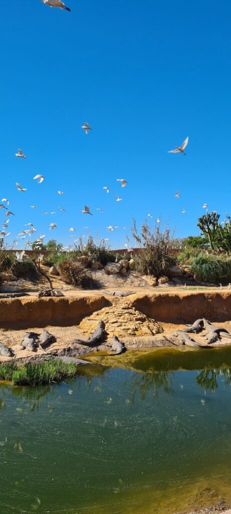 Gesagt getan. Auf dem Weg zum Stellplatz ist uns der neue Krokopark in Agadir ins Auge gefallen. Moderner Park mit dem Forschungziel, Krokodile wieder in Marokko anzusiedeln. Da wir schon genug Strand hatten, ging es lieber in den Park, zu aktuell 300 Krokodilen und Schlangen. Der Park ist für Famlien angelegt, ganz nach dem Motto: Spiel, Spaß, Spannung und was zum Lernen für die Kleinen. Für Erwachsene gibt es Kaffee und Snacks auf der Terrasse bei den Panzerechsen… alles in allem ein Besuch, der sich lohnt.
