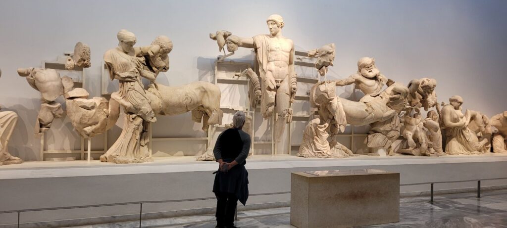 Wenn man sich die Ausgrabungsstätte heute anschaut, kann man sich kaum vorstellen welche Erd- bzw. Sandbewegungen stattgefunden haben, um eine gesamte Stadt (inkl. riesiger Tempelanlagen) freizulegen. Unser 2. Adventsspaziergang führte uns genau zu dieser Stätte, nach Olympia. Leider waren wir wohl ein paar Tage zu spät, denn das entzünden des Olymischen Feuers und der Fackel wurden die Woche zuvor feierlich begangen.