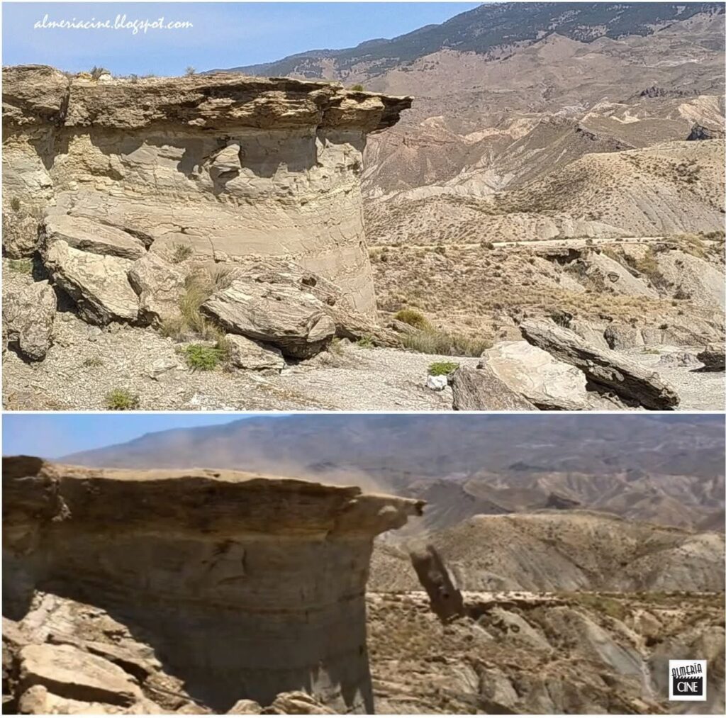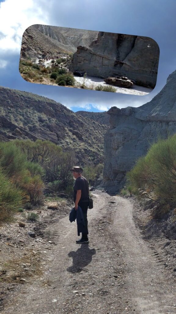 Nicht weit von Western Leone befinden sich in der Tabernas weitere Drehorte von Hollywoodproduktionen. Ich hatte ein paar GPS Daten von Drehorten in trockenen FlusslĂ€ufen (Ramblas), weiten TĂ€lern und markanten Felsen bekommen. Und richtig, hier wurde Indiana Jones und der letzte Kreuzzug gedreht. Leider lagen die gröĂeren Drehorte auf einem PrivatgelĂ€nde und die Einfahrten zu den Orten wurden bewacht. Ja richtig gelesen, man bewacht private WĂŒstenabschnitte… auĂer Sand, Felsen, trockene StrĂ€ucher gibt es dort nichts.