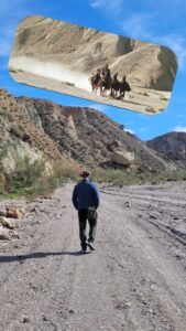 Egal, dann blieben nur die kleineren Drehorte zum Bewundern. Da sich mit den Jahren auch eine WĂŒste verĂ€ndert, z.B. durch Bewuchs, sind wir an einem prĂ€gnanten Drehort einfach vorbei gelaufen… đ. Es war dann mehr Geocaching zu drei markanten Felsen, die jetzt mit StrĂ€uchern bewuchert waren. đ