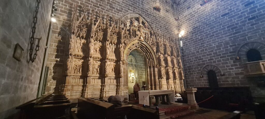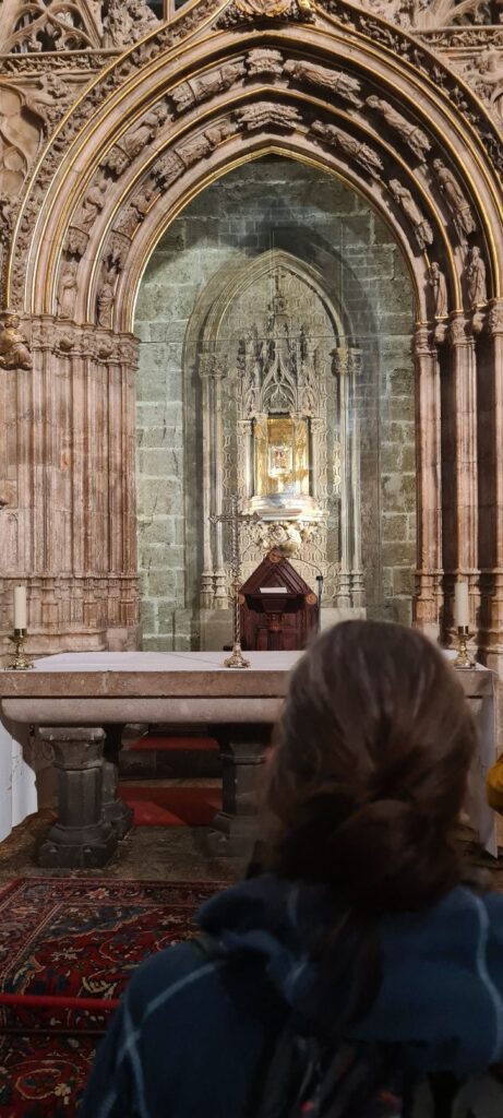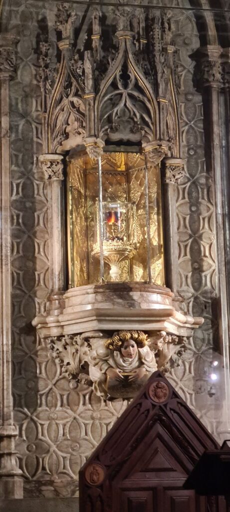 Den ‚mögliche‘ heilige Gral haben wir dann in der dorfansĂ€ssigen Kirche gefunden. 😅 Leider war der Gral weit weg und mit einer Glaskuppel versehen und davor noch mit Panzerglas gesichert. Gute Fotos von dem Becher waren nicht möglich. Ob es sich wirklich um DEN heiligen Gral handelt, einem Becher aus Achat, ist jedem selbst ĂŒberlassen. Denn 200 weitere Reliquien beanspruchen den Titel „heiliger Gral“. Ich bleibe lieber bei den Legenden, Mythen wie der Arthus Saga… den Becher gab es nicht 😅😅🙈.