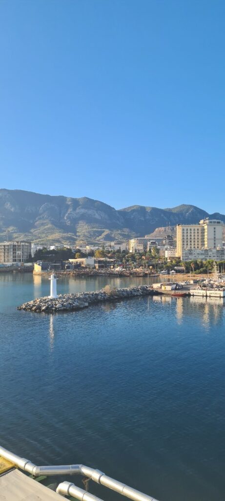 Am nächsten Abend ging es dann mit der Fähre nach Girne (Zypern). Die sollte 5 Stunden dauern, was sich jedoch herausgezögert hat, da sich die Fähre sich verspätete. Aus den geplanten 5 Stunden wurden dann 10… 🙈. Die Fähre war eher ein alter Seelenverkäufer. Auf Deck, direkt neben uns, lief ein fettes Aggregat… in den Räumlichkeiten waren nur steife abgeranzte Sitze, also an Schlaf war nicht zu denken. Den holten wir dann außerhalb von Girne nach.