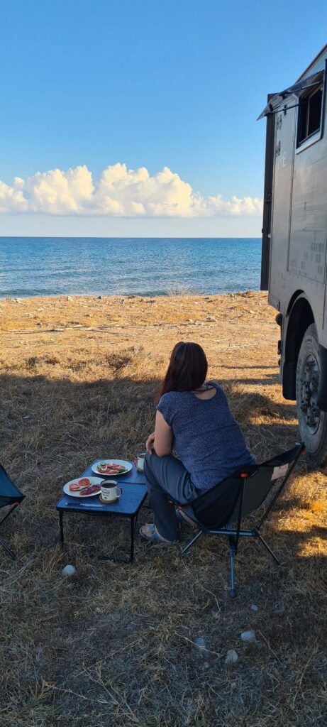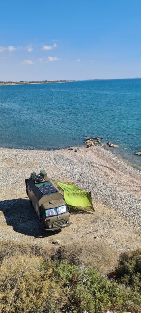 Nach etwas Energie tanken ging es ab in den Süden von Zypern. Einen alten Freund samt Familie besuchen. An der Grenze das erste große Problem bei einem Grenzübertritt auf unserer Reise. Wir dürfen keinen Kraftstoff in Reservekanistern einführen… wohin damit nur ? Zum Glück konnten wir wieder umkehren ohne Strafe (600€) zu zahlen. Also zurück, rechts ran und überlegen wohin mit dem Diesel… vorallem, wenn man kurz vor der Grenze noch vollgetankt hat 😅😅🙈.