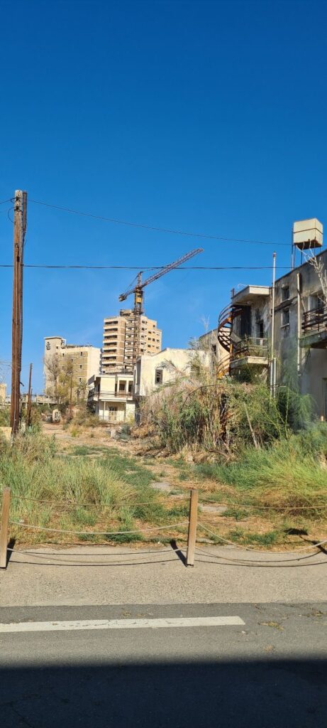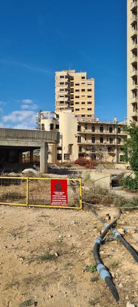 Bis 1974 war Varosha das größte Urlaubsparadies von Zypern. Als die Politmächtigen sich Griechenland anschließen wollten (ohne Volksabstimmung, es gab genau so viele Zyprioten mit trükischer Herkunft) platzte den Türken der Kragen und sie maschierten in den Norden ein. So wurde aus dem einst blühenden Ferienort eine verlassene Geisterstadt, abgesperrt von einem Stacheldrahtzaun. Die Stadt befindet sich im so genannten grünen Band, der damaligen Kriegsfront und jetzigen Pufferzone, die von UN Soldaten überwacht wird. Aber eines verbindet alle Zyprioten… sie sind etwas anders als die Menschen auf dem Festland, und zwar freiheitsliebender… und das lassen sich beide, Nord- und Süd- Zyprioten, nicht nehmen… was sie sehr sympathisch macht 🏴☠️✊🏻.