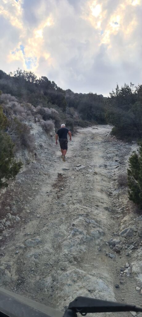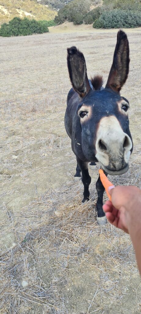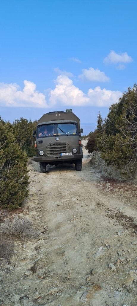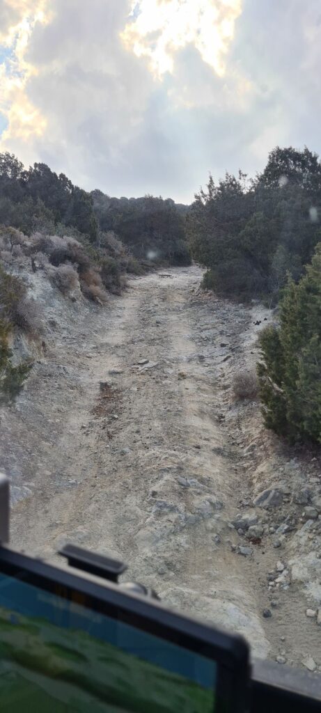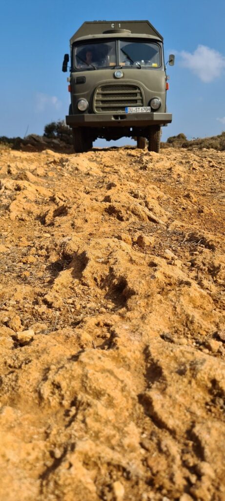 Unser letztes Ziel waren wilde Esel in Nordzypern (Karpas). Wir wollten es zuerst auf der Nordseite der Landzunge versuchen. Dort war es nicht so touristisch erschlossen, auch Straßen wurden nördlich immer weniger… Für Pisten waren wir ja bestens gerüstet. Naja, am Ende mussten wir vor unserem Ziel leider umkehren, die Piste war mit ausgespülten Rinnen durchzogen… die Rinnen waren fast 1m tief, was wir mit unserem Fahrzeug, aufgrund der geringen (für Offroaderverhältnisse) Bodenfreiheit bei den Gasboxen, nicht bewältigen konnten. Also hieß es, rückwärts die Piste zurück… zum Glück fanden wir noch eine Gelegenheit zum Drehen. Danach erst einmal 2 Stunden zurück und auf der südlichen Seite dann noch eine Stunde bis zu den Eseln.