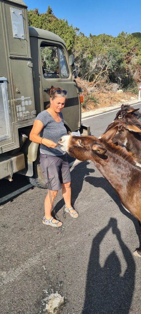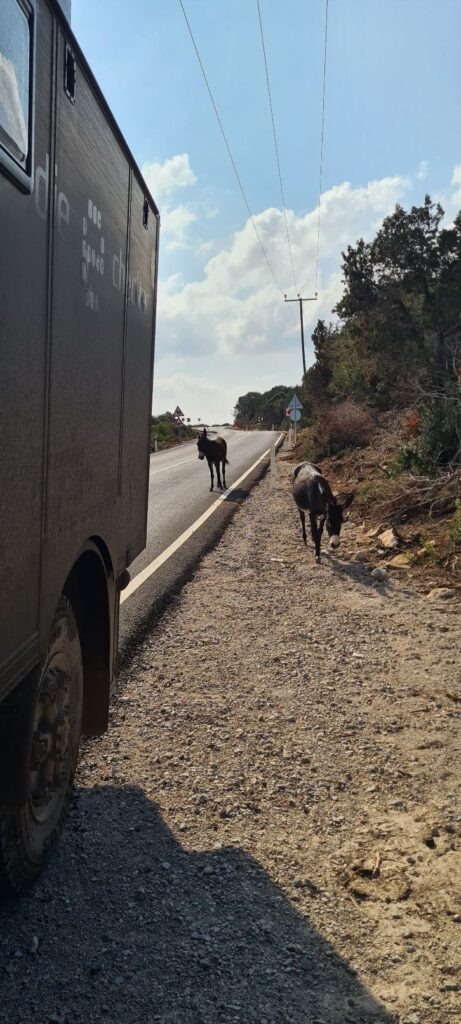 Auf der nördlichen Seite haben wir ein paar scheue Esel entdeckt, ganz im Gegenteil zu denen auf der südlichen Seite der Landzunge. Die waren eher dreist und hielten die Fahrzeuge an, in dem sie sturr die Straße blockierten, um für Leckerlies zu betteln.